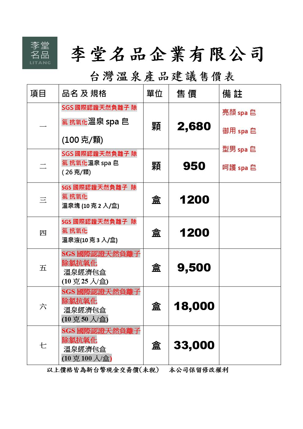 李堂名品希望透過溫泉負離子傳動整個世界、轉動自然健康的生活邁進,進而再以與自然健康生活有關產品引入。在產品銷售方面及運用皆以增進健康導向為目的,包含有SGS國際認證天然負離子之溫泉塊、溫泉液、溫泉SPA皂及『最新德日科技隱形透明防滑技術』和美國發明専利磁能腦活氧機等優質健康產品讓健康溶入生活、讓生活裏有自然。